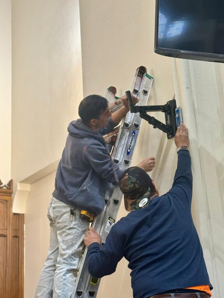 Voluntarios que manejan el equipo de audio para asegurar un sonido claro y excelente durante los servicios y eventos.