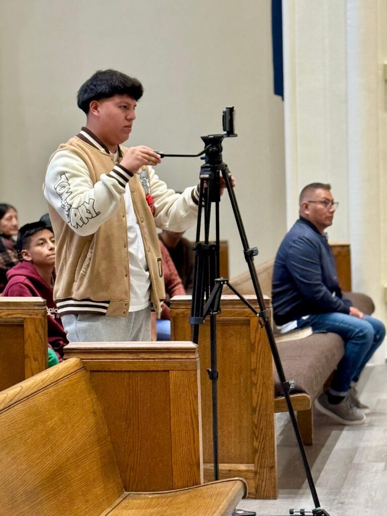 El equipo técnico detrás de las cámaras, pantallas, diapositivas y transmisiones en vivo: apoyando el culto a través de imágenes y producción.
